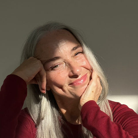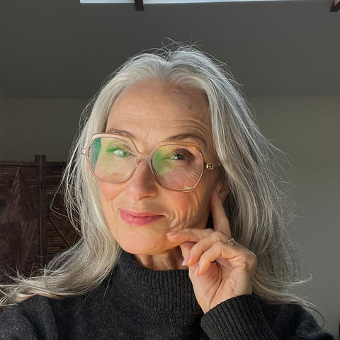 at ease in a photographic studio. With her silver hair, clear skin and body confidence, Lolly is a natural fit for beauty and wellness campaigns, as well as travel and lifestyle work.